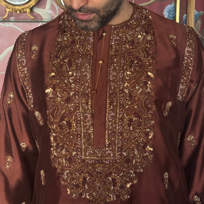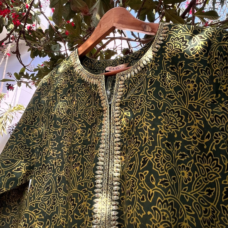 Kaasni is a bespoke couture house rooted in artistry, heritage, and the timeless beauty of handcrafted clothing. Born from an inherited deeply rooted aesthetic and shaped by years in the worlds of film and fashion, Kaasni celebrates the richness of local craft and the mastery of skilled karigars. Every ensemble is thoughtfully designed, handwoven, and hand-embroidered, crafted slowly, and intentionally, to become a cherished heirloom.